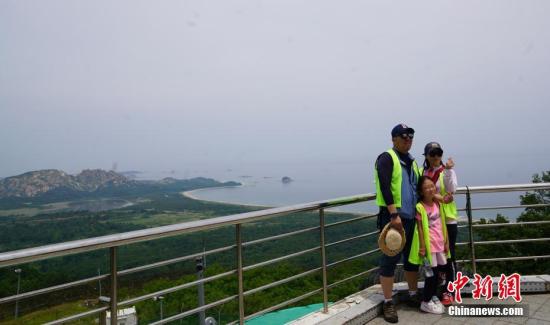 资料图片:韩国向公众开放非军事区徒步游。图为民众在金刚山展望台合影,身后为朝鲜境内的金刚山。中新社记者 曾鼐 摄