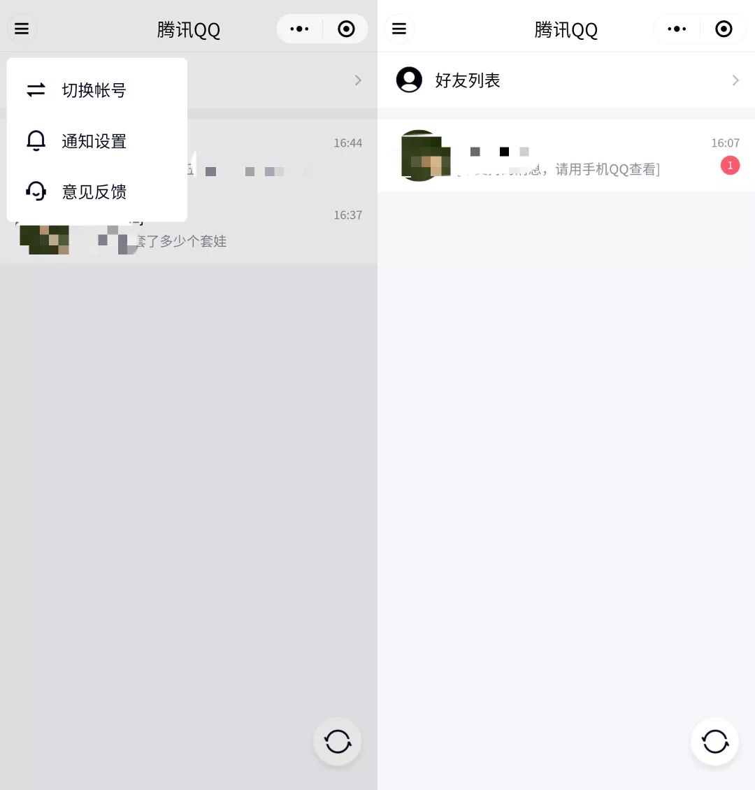 登录账号后,将从「QQ 登录」跳转回「腾讯 QQ」微信小程序,此时你就能查看好友和群聊的未读消息,以及好友申请消息。