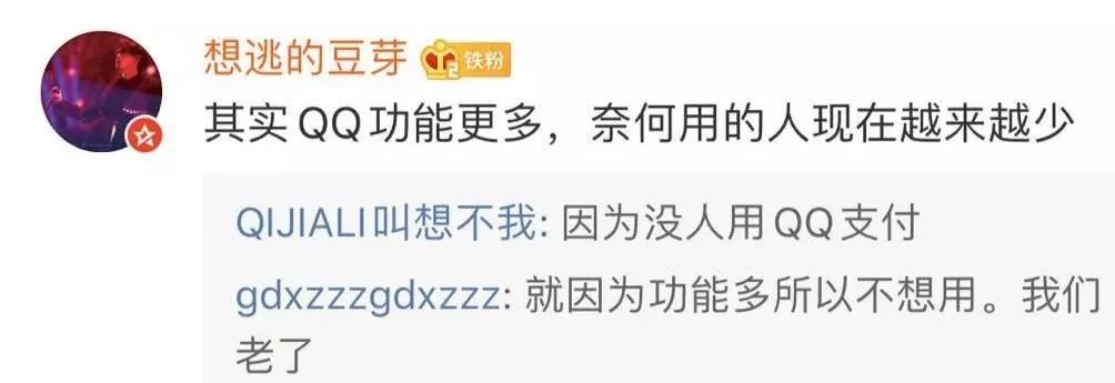 QQ一开始就是基于PC的即时聊天软件,而微信完完全全是基于移动平台而生的。QQ功能十分齐全、同时又相当“沉重”,惯性太大,不好转弯。