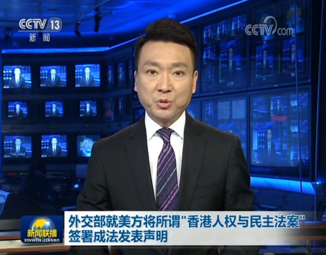 针对美方将所谓“香港人权与民主法案”签署成法,昨天的《新闻联播》十连发谴责美方。