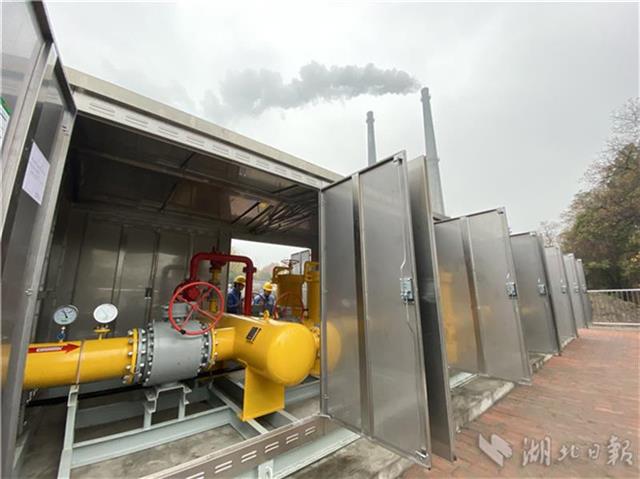 12月16日,安能热电厂“煤改气”项目正式投产,工作人员正在检测天然气调压箱的运行情况。