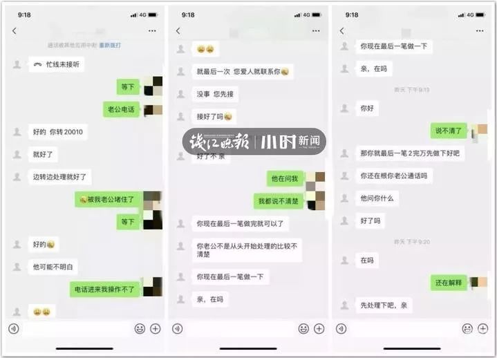 “我就光听他在那里巴拉巴拉说,自己都来不及反应。”回想起来,刘女士还有点蒙,好在转款期间,丈夫突然一个电话打进来,把刘女士和“客服”的微信语音截断了,而这时,刘女士就差转最后一笔钱了。