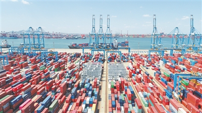 山东自由贸易试验区青岛片区内的青岛港全自动化码头。新华社发
