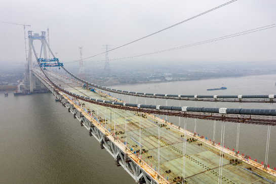 当日,我国首座公铁两用悬索桥五峰山长江大桥完成最后两节钢梁焊接,成功实现主桥合龙,该桥是世界上首座千米级高铁悬索桥。