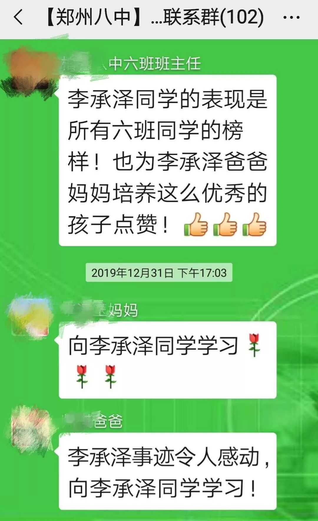 “尊敬的郑州八中学校领导和老师,您们好!首先向你们表示最衷心的感谢,感谢学校培养的好学生李承泽……”