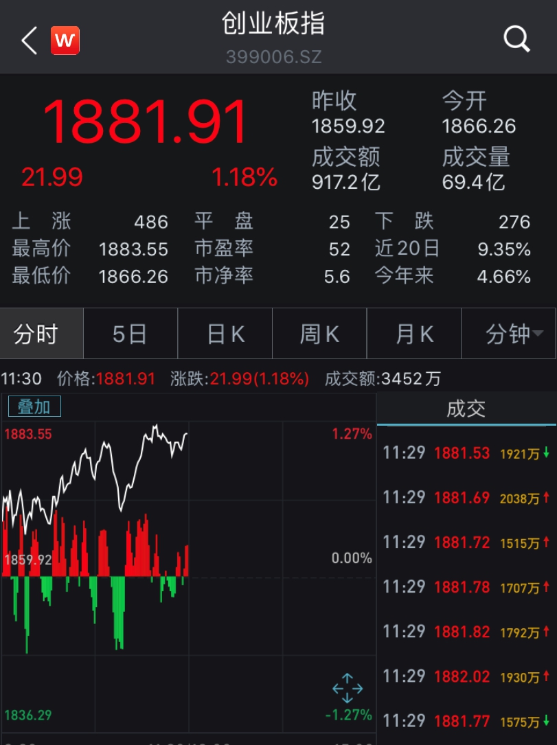中新经纬客户端1月7日电 周二(7日)早盘两市震荡上行,三大指数全线飘红,创业板指表现相对较好,涨幅超1%。截至11:30,沪指报3094.44点,涨幅0.36%;深成指报10781.37点,涨幅0.78%;创业板指报1881.91点,涨幅1.18%。