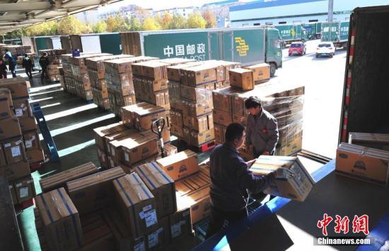 资料图:工作人员正在将快递装车 中新社发 翟羽佳 摄