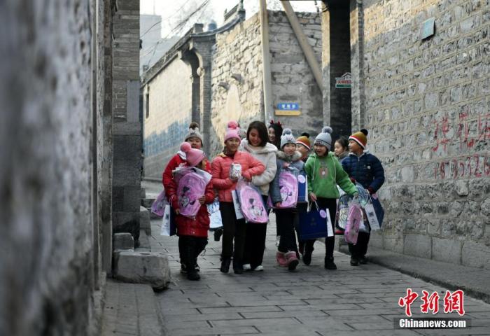 资料图:学生们开心地拿着礼物。中新社记者 翟羽佳 摄