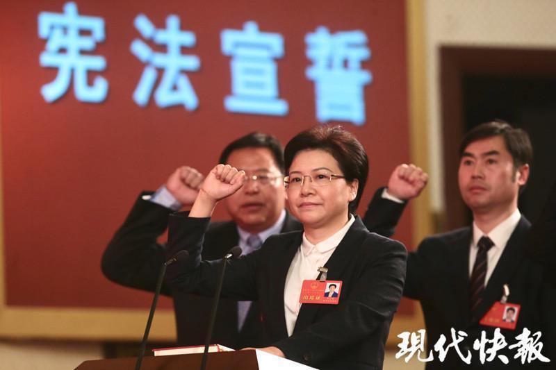 △韩立明当选后进行宪法宣誓