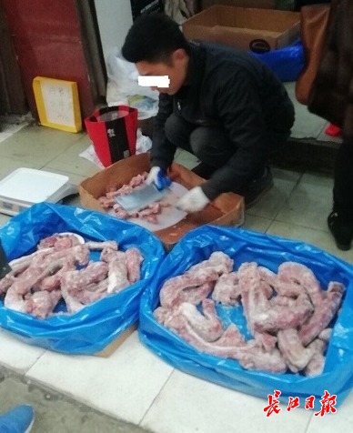 长江网1月13日讯(记者费权)马上要过年了,市民们开始置办年货。近来,市民王先生反映在武昌区大成路菜市场后一条巷子里,买到了20元一斤的牛尾巴,吃起来却没有牛肉味,怀疑是假牛尾巴。