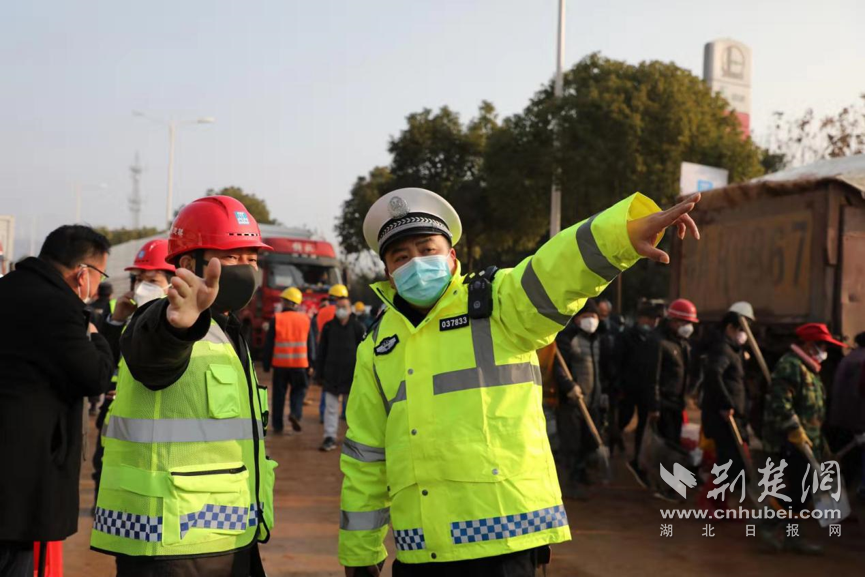 荆楚网客户端—荆楚网消息(记者张扬 通讯员徐飞、李璐)“你好师傅,什么情况?”“我是进医院送物资的,车子很长,现在出来卡住不好动了”,“等一下,你听我指挥,盘子打大一点”。这是2月10日下午4点,武汉火神山医院出口处,蔡甸区交通大队民警李辉与货车司机的对话。