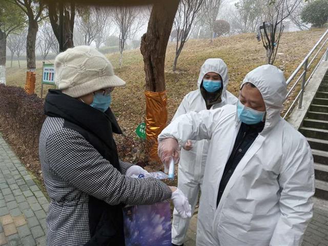 2月17日,是武汉市展开拉网排查的第一天,家住岳家嘴小区的15名省直统战系统党员组建疫情防控志愿服务小分队,配合社区工作人员开展疫情摸底排查、小区进出口封闭管理、社区消毒等工作。