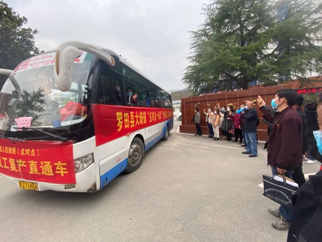 按照疫情防控包保责任制,对28个行政村进行全覆盖大摸排,精准掌握全镇所有外出务工人员的基本信息,实施台账管理、进行动态跟踪。同时,进一步召开专题党委会,党委书记徐生强带头认领、班子成员主动担当,每人对接一个重点目的地城市,负责与当地商会、企业沟通,协调接收相关事宜,力求为返岗人员提供“出了家门上车门,下了车门进厂门”、“点对点、一站式”专车输送服务,实现与外地用工企业无缝对接,打通我镇劳务输出“大动脉”。