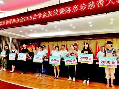 “陈爷爷,谢谢您给予我们帮助,我一定会好好学习,将来报效祖国!”昨日上午,在大冶市陈贵镇“大冶市陈彦珍教育助学基金会”捐赠现场,一名女生向陈彦珍深深地鞠了一躬。她只是受陈彦珍老人捐助的189名贫困学生中的一个代表。
