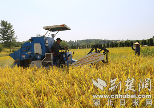 白露稻谷黄,农家收割忙。9月9日,钟祥市九里回族乡李家台村脱贫户边文贵趁着天晴抢收稻谷,望着金灿灿、沉甸甸的稻穗,他心中乐开了花。