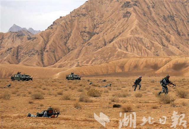 随后,“蓝军”抓住“红军”指挥部署、立足未稳的时机,组织前出火力对其进行打击,一时间,着陆场上“硝烟”四起。演练中,面对接连不断的敌情险情,双方指挥员临危不乱,下达一道道作战指令,官兵们克服陌生地域、复杂气象、高原低压缺氧等困难,按照指挥员的命令相互配合、密切协同。