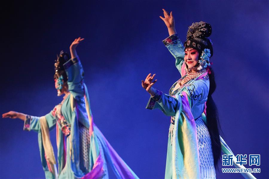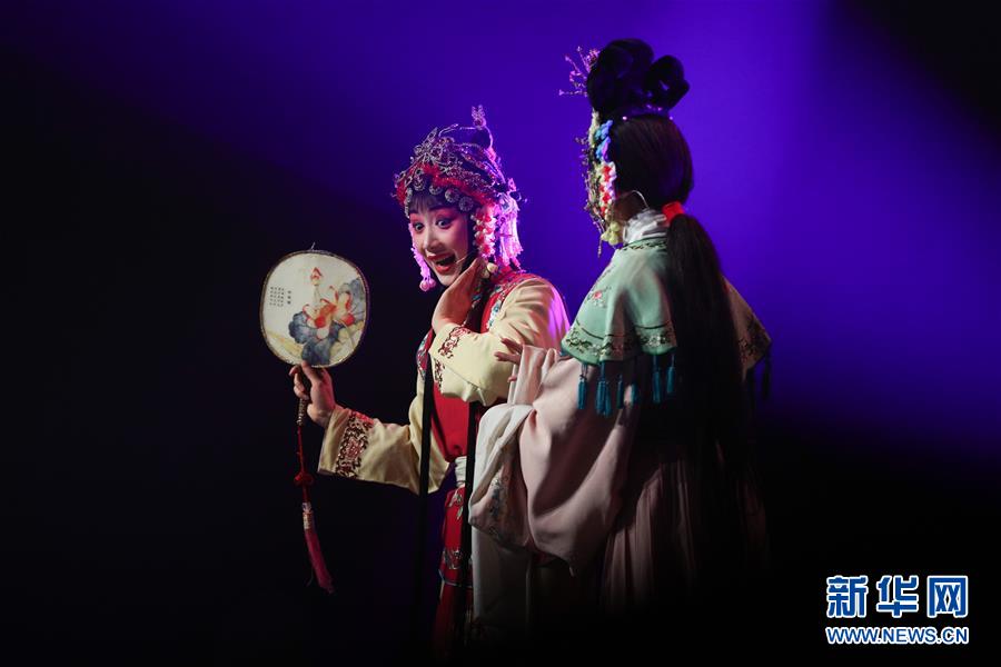 1月18日,在比利时列日,演员表演楚剧《站花墙》。 1月17日至18日,来自中国武汉的艺术家们在比利时布鲁塞尔和列日举行“欢乐春节”文艺演出,与华侨华人、当地民众共同迎接中国农历新年。 新华社记者 郑焕松 摄