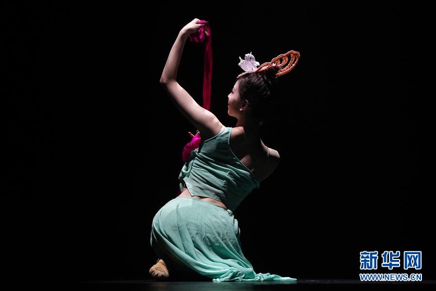 1月18日,在比利时列日,演员表演独舞《羽化灵蛇》。 1月17日至18日,来自中国武汉的艺术家们在比利时布鲁塞尔和列日举行“欢乐春节”文艺演出,与华侨华人、当地民众共同迎接中国农历新年。 新华社记者 郑焕松 摄