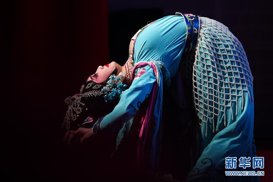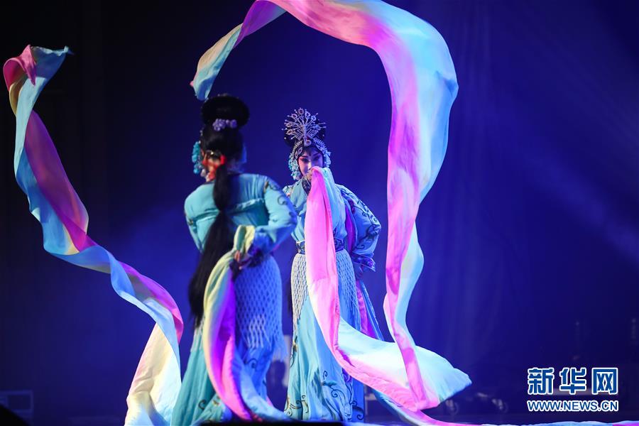 1月18日,在比利时列日,演员表演京剧《天女散花》。 1月17日至18日,来自中国武汉的艺术家们在比利时布鲁塞尔和列日举行“欢乐春节”文艺演出,与华侨华人、当地民众共同迎接中国农历新年。 新华社记者 郑焕松 摄